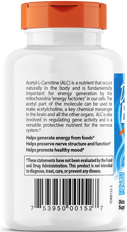 Acetyl-L-Carnitine (ALC) is a naturally occurring form of L-Carnitine in the body that is involved in the metabolism of fatty acids into the universal energy molecule ATP. ALC supports the biosynthesis of acetylcholine, a key neurotransmitter for brain and nerve cell functions which regulates activities of the vital organs, blood vessels, and communication between nerves and muscles. ALC also supports levels of glutathione, a significant antioxidant sustaining neurons and protecting cellular components from superoxide radicals.