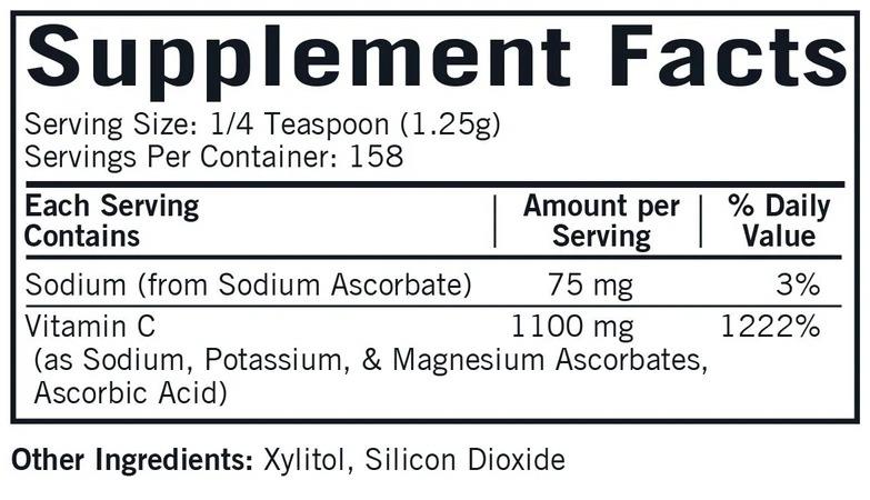 Offers powerful antioxidant activity for immune system support and other health benefits. This product offers high potency (1,100 mg) vitamin C in a buffered powder formulation. It’s made with sodium, potassium and magnesium ascorbates to produce a buffered, acid balanced formulation that’s very gentle on the stomach. This product is sweetened with xylitol. Supplements in our Bio-Max Series use forms of nutrients that have been clinically proven to be among the best absorbed and bioavailable. Hypoallergenic. Gluten and casein free. Ultra Tested®.