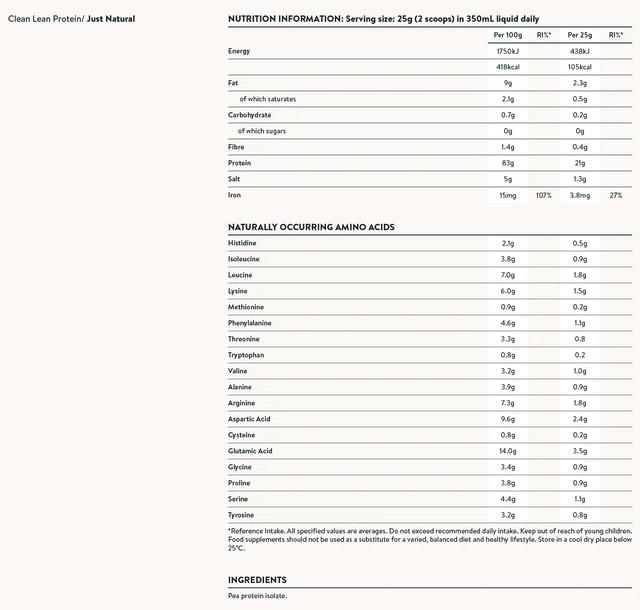 Made from the highest quality European golden peas, Clean Lean Protein is the environmentally friendly choice. Complete with all nine essential amino acids, it is a natural source of iron, tasty and easy to digest.