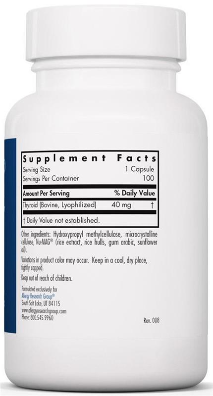 Provides thyroid tissue. Our natural glandular material is derived from government-inspected, range-fed animals, raised in New Zealand and Australia, whose animal husbandry regulations are among the strictest in the world.